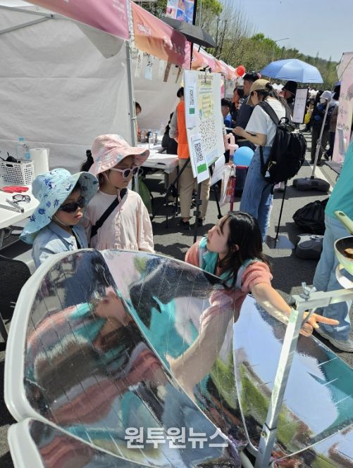 이번 홍보부스는 시민들이 일상 속에서 쉽게 실천할 수 있는 탄소중립 방법을 직접 체험할 수 있도록 구성됐으며, 태양열 조리기를 활용한 쥐포굽기와 바다유리를 활용한 석고방향제 만들기(업사이클링) 체험 프로그램 등이 운영됐다.