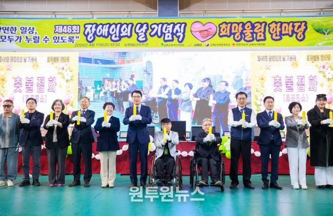 (원투원뉴스) 남해군은 지난 17일 남해실내체육관에서 ‘당연한 일상, 모두가 누릴 수 있도록’이라는 슬로건으로 제46회 장애인의 날 기념행사를 개최했다.
