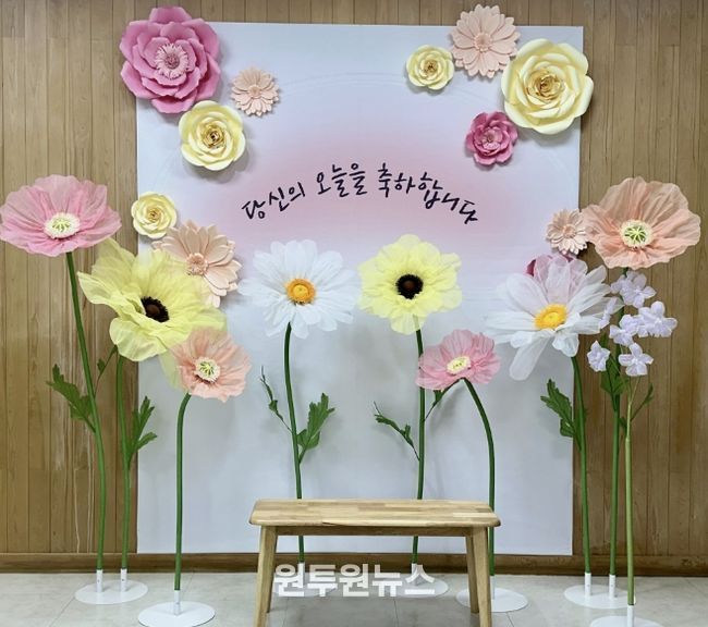 (원투원뉴스) 충주시가 지난 22일 시청 1층 민원실을 방문하는 시민들에게 인생의 소중한 순간을 기념하고 특별한 추억을 선사하기 위해 ‘행복 포토존’을 새롭게 조성했다.