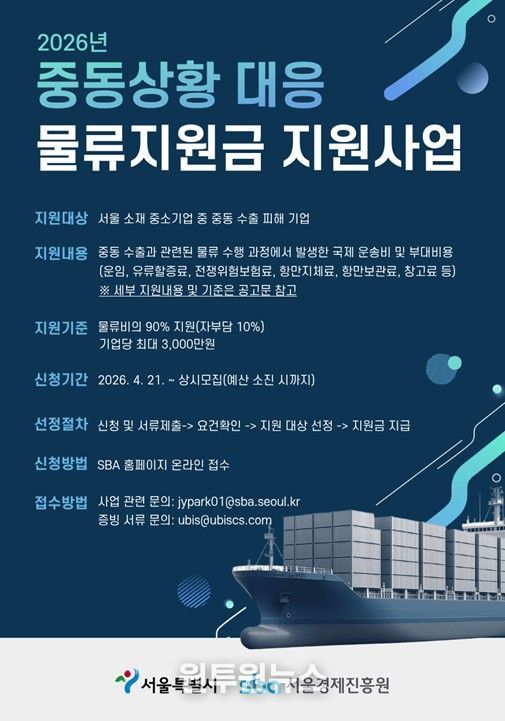 이에 서울시는 물류비 부담 완화를 위해 4월 21일부터 물류비 지원사업 참여기업을 모집하고, 현장 중심 대응을 이어간다고 밝혔다.