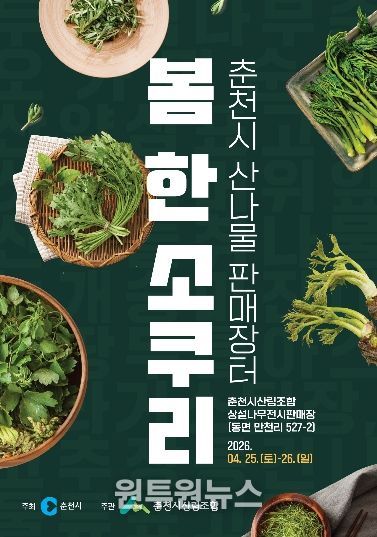 춘천시는 춘천시산림조합과 함께 오는 25~26일 이틀간 춘천시산림조합 상설나무전시판매장에서 ‘봄 한 소쿠리’ 산나물 판매장터를 연다.