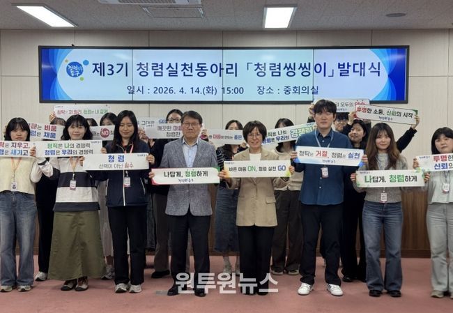 제3기 '청렴씽씽이'는 청렴 행정을 선도하기 위해 자발적으로 모인 MZ세대 직원 19명으로 구성됐으며, 앞으로 청렴 관련 아이디어 제안, 직원 의견 수렴, 참여형 청렴 프로그램 운영 등 다양한 활동을 통해 조직 내 청렴 실천 분위기 조성에 앞장설 계획이다.