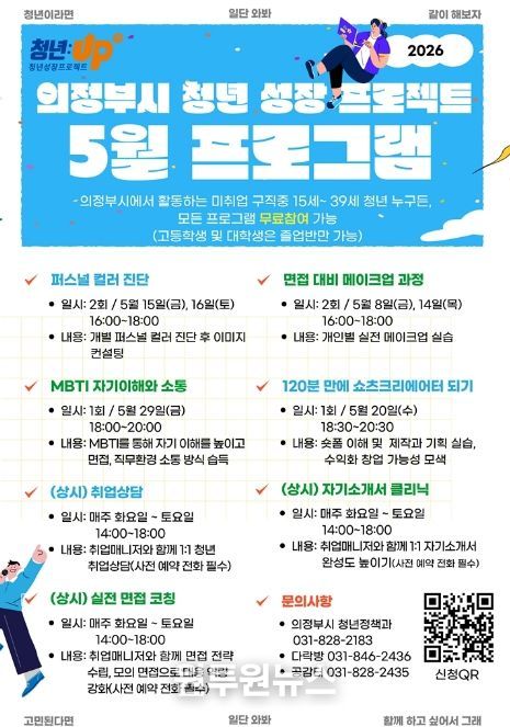 (원투원뉴스) 의정부시는 미취업 청년의 취업 준비 역량 강화를 위해 ‘청년성장프로젝트’ 5월 프로그램을 운영한다.