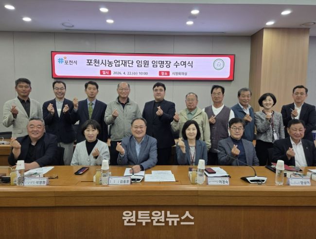 (원투원뉴스) 재단법인 포천시농업재단은 4월 22일 공개모집 절차를 통해 선발된 비상임 이사 및 감사 13명을 대상으로 임명장 수여식 개최하고 2028년까지 운영되는 제3대 이사회 출범을 알렸다.