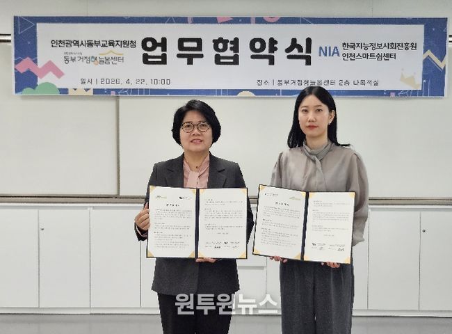 (원투원뉴스) 인천동부교육지원청은 지난 22일, 한국지능정보사회진흥원 산하 인천스마트쉼센터와 거점형늘봄센터 학생들의 ‘인터넷·스마트폰 과의존 예방을 위한 업무협약’을 체결했다.