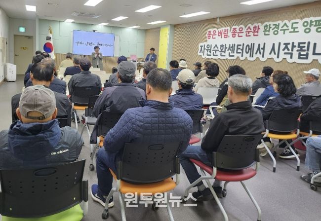 (원투원뉴스) 양평군은 군 내 유일의 폐기물 처리시설인 ‘양평자원순환센터’ 현장 근로자들의 안전과 건강을 위해 전문 교육기관에 의뢰한 산업안전보건교육을 정기적으로 실시하고 있다고 밝혔다.