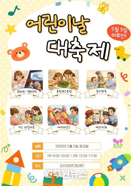 (원투원뉴스) 오산시가 운영하는 오산아이드림센터가 어린이날을 맞아 온 가족이 함께 즐길 수 있는 특별 체험행사를 마련한다.