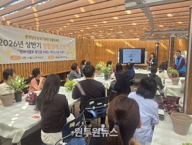 (원투원뉴스) 충남도 농업기술원은 23일 기술원 내에서 올 상반기 생활원예 프로그램 2회차 과정인 ‘식물, 가족이 되다’ 교육을 성공적으로 진행했다고 밝혔다.