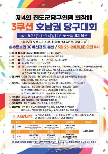 이번 대회는 대한당구연맹이 주최하고 전남당구연맹과 진도군당구연맹이 공동 주관하는 전국 규모의 대회로, 프로선수들이 참가해 수준 높은 경기를 펼칠 예정이다.