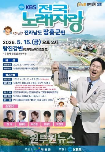 (원투원뉴스) 장흥군은 KBS ‘전국노래자랑’ 장흥군편을 개최하고 지역 홍보와 축제 분위기 확산에 나선다.