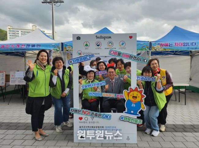 (원투원뉴스) 울주군 지역사회보장협의체가 23일 제46회 장애인의 날을 맞아 울산 문수체육관에서 장애인권 및 인식개선을 위한 홍보부스 ‘우리의 말이 인권이 됩니다’를 운영했다.