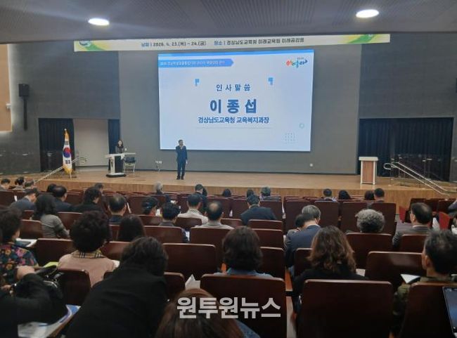 (원투원뉴스) 경상남도교육청은 23일부터 24일까지 이틀간 의령 경상남도교육청 미래교육원(23일)과 창원 마산대학교(24일)에서 도내 전 학교장 950여 명을 대상으로 ‘학생맞춤통합지원 관리자 역량 강화 연수’를 권역별로 개최했다.