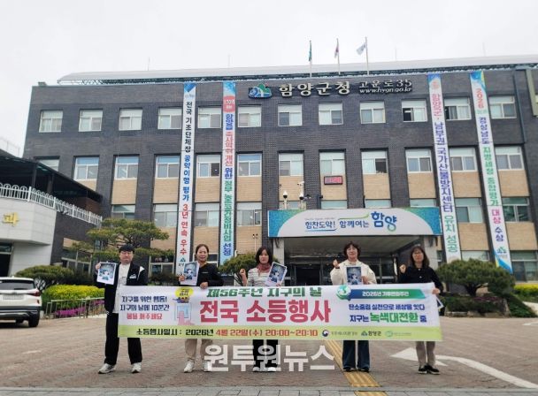 (원투원뉴스) 함양군은 ‘제56주년 지구의 날 4월 22일’ 을 맞아 추진한 ‘2026년 제18회 기후변화주간’과 소등 행사 동참 캠페인을 군민과 공공기관의 적극적인 참여 속에 성공적으로 마무리했다고 밝혔다.