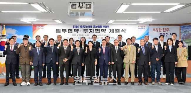 (원투원뉴스) 경상남도와 진주시는 23일 진주시청 문화강좌실에서 경상국립대학교, 한국산업기술시험원(KTL), 우주 분야 기업 4개 사와 함께 경남 우주산업 육성을 위한 업무협약 및 투자협약을 체결했다.