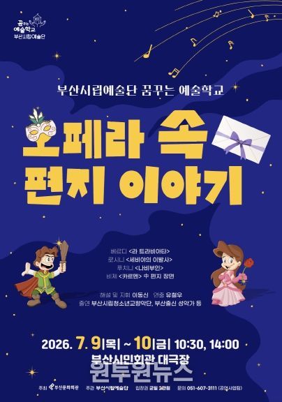 연주는 부산시립청소년교향악단이 맡으며, 이동신 교수의 지휘와 함께 더해질 해설은 관객의 이해를 돕고 공연의 재미를 한층 높일 예정이다. 공연은 오는 7월 9일(목)과 10일(금) 이틀간 오전 10시 30분, 오후 2시 하루 2회씩 총 4회에 걸쳐 부산시민회관에서 열린다. 현재 부산시내 초·중·고등학생을 대상으로 관람 예약이 진행 중이다.