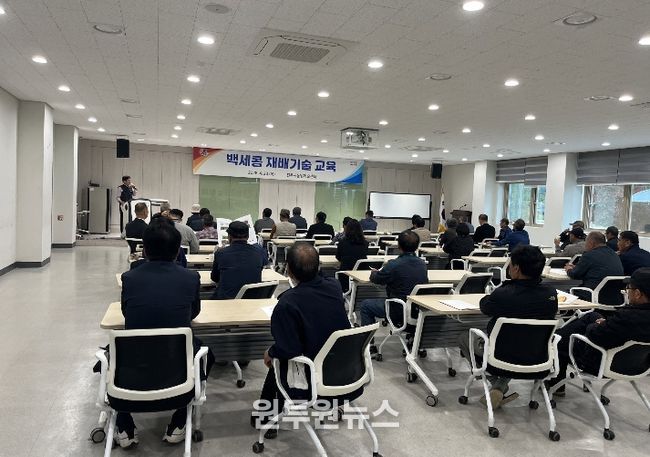 이번 교육은 정종일 경상국립대 교수를 강사로 초청해 정 교수가 직접 개발한 ‘백세콩’의 재배 기술과 관리 요령을 강의했다. 교육 내용은 ▲백세콩의 품종 특성 ▲재배 기술 및 토양관리 ▲병해충 방제 ▲수확 및 저장 관리 등 현장에서 바로 적용이 가능한 실용 기술 위주로 강의해 실질적인 도움이 됐다.