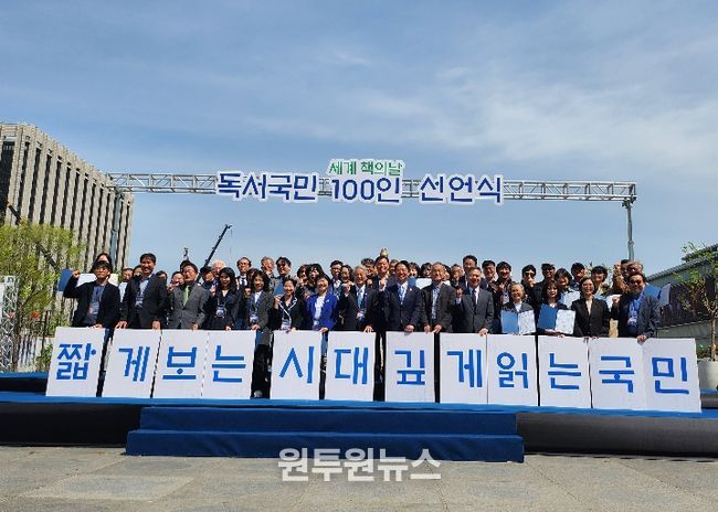 (원투원뉴스) 경상남도교육청이 23일 ‘세계 책의 날’을 맞아 서울 광화문광장에서 열린 ‘독서국민 100인 선언식’에 참여해 전국적인 독서 문화 확산에 힘을 보탰다.