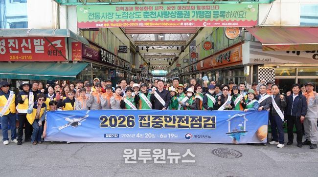 (원투원뉴스) 춘천시와 춘천소방서, 한국전기안전공사, 강원도시가스 등 관계기관이 23일 중앙시장 일원에서 ‘2026년 집중안전점검 및 안전점검의 날’ 합동 캠페인을 실시했다.