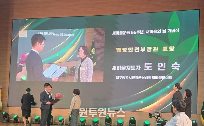 이에 함께 자리한 박택관 군위군새마을회장은 “이번 수상은 2025년 대구시 새마을부녀회 구군 평가에서 최우수 성과를 이끌어낸 군위군 새마을부녀회원들의 공동 노력의 결과”라며 축하와 격려의 뜻을 전했다.