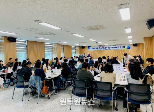 (원투원뉴스) 경상북도경산교육지원청은 4월 23일, 관내 초, 중, 고, 특수학교 교육복지사업 및 학생맞춤통합지원 업무담당자와 지역기관 관계자 80여 명이 함께 경산 관내 학생들의 학교적응력 향상과 촘촘한 교육복지안전망 구축을 위한 연수 및 협의회를 개최했다.