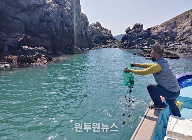 (원투원뉴스) 신안군은 4월 24일 연안해역의 수산자원 회복과 어업인 소득증대를 위해 흑산면 다물도 외 4개 지선에 전복 17만 마리를 방류한다.