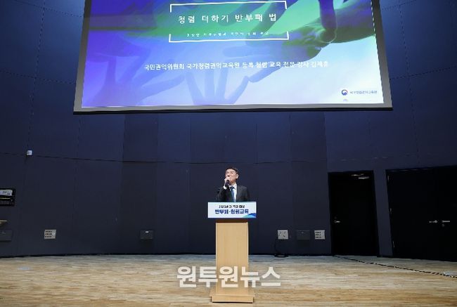 이날 강의는 국민권익위원회 청렴 전문강사인 김제훈 강사가 실무에서 놓치기 쉬운 공무원 행동강령을 주제로 진행했다.