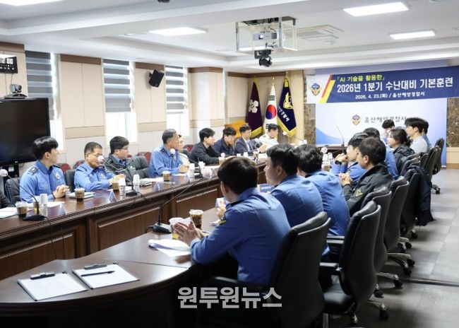 (원투원뉴스) 울산해양경찰서는 23일 오후 2시 울산해경 3층 중회의실에서 대형 인명피해가 우려되는 크루즈선 화재 사고에 대비해 2026년 1분기 수난대비 기본훈련을 집행했다고 밝혔다,