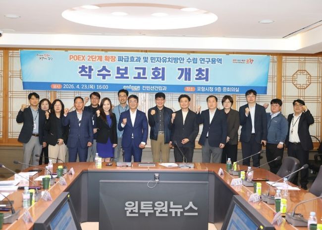 시는 23일 시청 중회의실에서 ‘POEX 2단계 확장 파급효과 및 민자유치방안 수립 연구용역’ 착수보고회를 개최했다고 밝혔다. 이날 보고회에서는 수행기관으로 선정된 동덕여자대학교 산학협력단이 용역 추진 방향과 주요 과업을 발표했다.