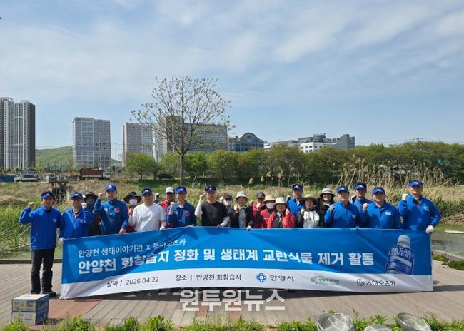 (원투원뉴스) 안양시는 ‘지구의 날’인 22일 동아오츠카와 함께 석수동 일대 안양천의 화창습지에서 환경 정화 활동을 펼쳤다고 23일 밝혔다.