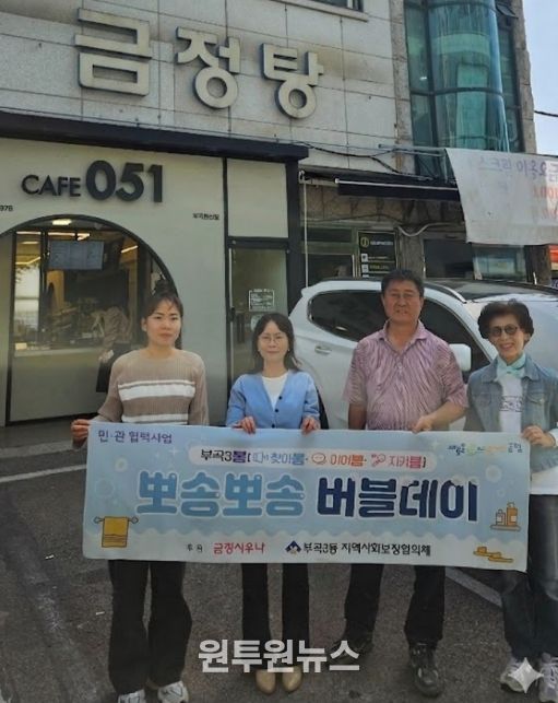 (원투원뉴스) 부산 금정구 부곡3동은 지난 21일 금정사우나의 후원으로 관내 취약계층 어르신 20세대 대상 무료 목욕 서비스 ‘뽀송뽀송 버블데이’ 사업을 추진했다.
