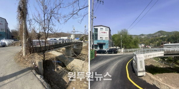 구는 지역 주민들의 요청을 반영해 사업비 2억 9000만 원을 들여 길이 14m, 폭 2.6~13.4m 규모 교량 가각부를 확장하는 공사를 지난해 9월 시작했다.