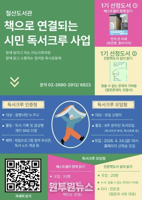 철산도서관은 오는 5월부터 ‘책으로 연결되는 시민 독서크루’ 사업을 본격 운영한다고 24일 밝혔다.