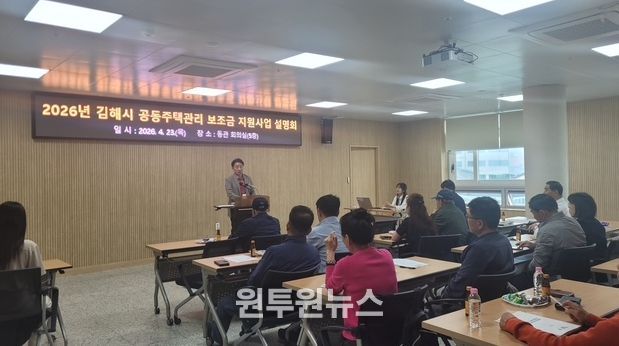(원투원뉴스) 김해시는 2026년 공동주택관리 보조금 지원사업에 선정된 23개 단지를 대상으로 23일 사업 설명회를 개최했다.