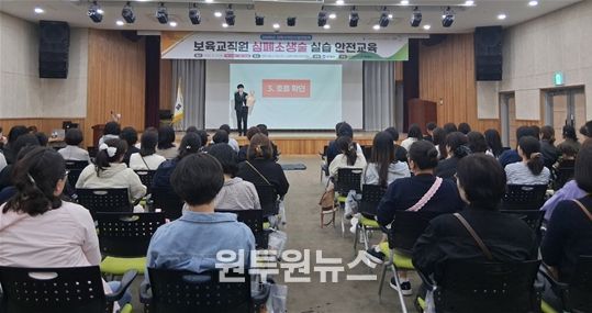 교육은 어린이집에서 발생할 수 있는 안전사고 대비와 보육교직원들의 위기 대처능력 강화를 위해 실습 교육으로 진행됐다.