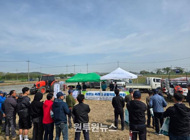 (원투원뉴스) 군산시농업기술센터는 대야농업발전연구회와 공동 주관해 4월 23일 대야면 광교리 일원에서 벼 마른논 써레질 재배 기술 현장 연시회를 성황리 개최했다고 밝혔다.
