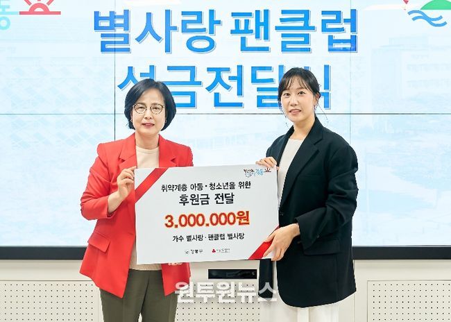 가수 별사랑은 팬클럽 별사탕과 함께 지원이 필요한 아동·청소년을 위해 성금 300만 원을 전달했다.