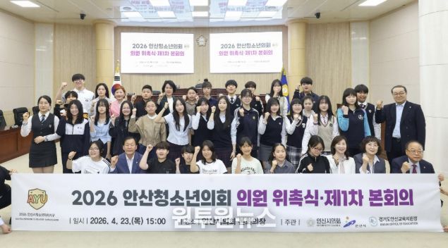 (원투원뉴스) 안산청소년의회가 지난 23일 열린 ‘2026 안산청소년의회 의원 위촉식’과 ‘안산청소년의회 제1차 본회의’를 시작으로 본격적인 활동에 들어갔다.