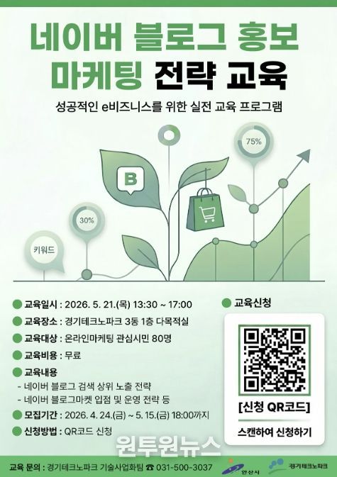 이번 교육은 5월 21일 오후 1시 30분부터 5시까지 경기테크노파크 3동 1층 다목적실(상록구 해안로 705)에서 진행된다.