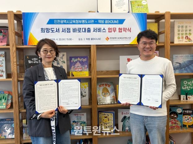 (원투원뉴스) 인천광역시교육청부평도서관은 지난 22일 '책방 쿰'과 ‘희망도서 서점 바로대출 서비스’ 업무협약을 체결했다.