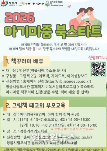 (원투원뉴스) 정읍시가 태교 단계부터 책과 함께하는 육아 문화를 조성하기 위해 ‘임신부 아기마중 북스타트 사업’을 신규 운영한다.