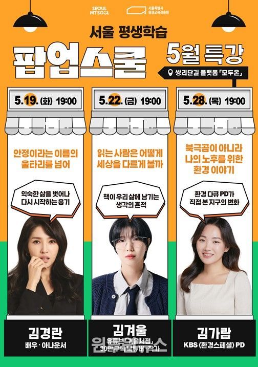 (원투원뉴스) 서울특별시평생교육진흥원이 지난 4월 도봉구 쌍문역 인근에 개관한 서울시 첫 역세권 평생학습 거점 ‘서울 평생학습 팝업스쿨’을 확대 운영한다. 시범운영 한 달간 500여 명이 참여했으며, 5월에는 정규강좌, 명사특강, 러닝숍 등 3개 영역에서 총 13개 과정을 편성하고, 650명의 시민 참여를 목표로 한다.