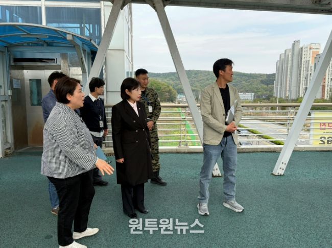 이날 현장에는 송옥란 의원을 비롯해 담당 공무원, 김은실 이장(양촌2리), 군부대 관계자 등이 함께 참석해 육교 및 엘리베이터의 운영 실태를 직접 확인하고 불편 사항을 공유했다. 현장을 꼼꼼히 살핀 송 의원은 엘리베이터 정기점 검 강화와 신속한 유지보수 체계 구축을 관계기관에 강력히 촉구했으며, 공사 기간 동안 학생들의 안전한 통행을 보장하기 위한 보완 대책 마련도 함께 요청했다.