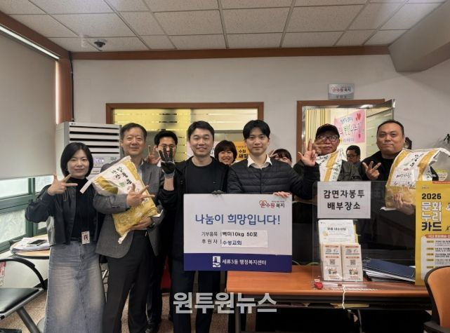 (원투원뉴스) 수원시 권선구 소재 수성교회는 세류3동행정복지센터에 쌀 50포를 기부하며, 지역 내 어려운 이웃을 위한 따뜻한 나눔을 실천했다.