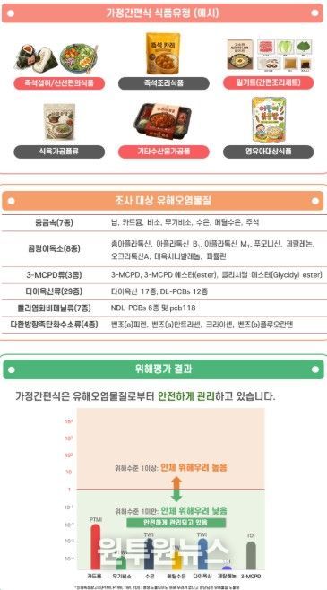 현재 가정간편식은 구성 재료별로 유해오염물질 안전기준을 설정해 관리하고 있으나, 최근 소비 증가에 따라 제품 형태를 고려한 종합적인 안전성 평가 필요성이 제기되어 선제적으로 위해평가를 추진했다.