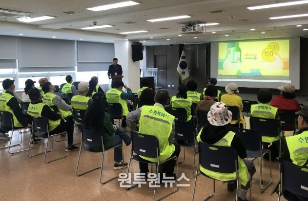 장안구는 현재 자원순환역 3개소와 에코스테이션 7개소를 운영·관리하고 있으며, 이번 교육은 해당 시설에서 근무하는 자원관리사 40명을 대상으로 진행됐다.