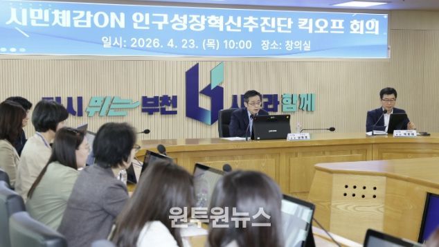 (원투원뉴스) 부천시는 지난 23일 시청 창의실에서 ‘시민체감ON 인구성장혁신추진단’ 킥오프 회의를 열고 인구 구조 변화에 대응하기 위한 추진체계 운영을 시작했다.