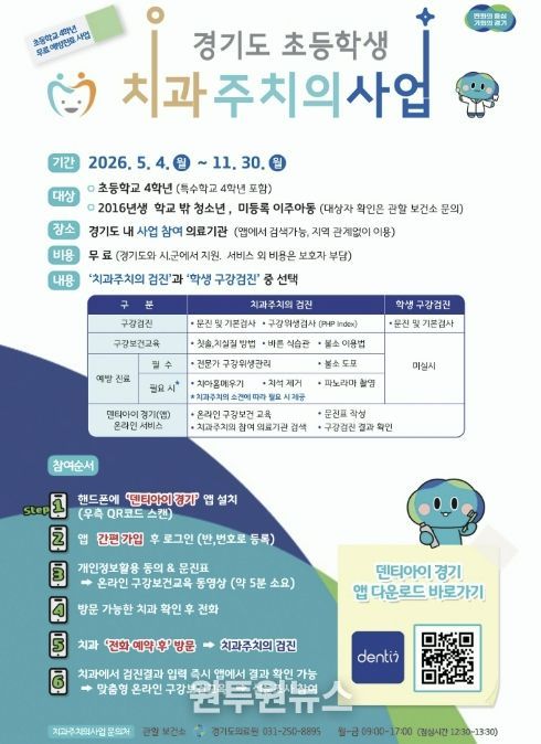 (원투원뉴스) 포천시보건소는 지역 내 아동의 구강건강 관리를 강화하기 위해 오는 5월 4일부터 11월 30일까지 ‘초등학생 치과주치의사업’을 추진한다.