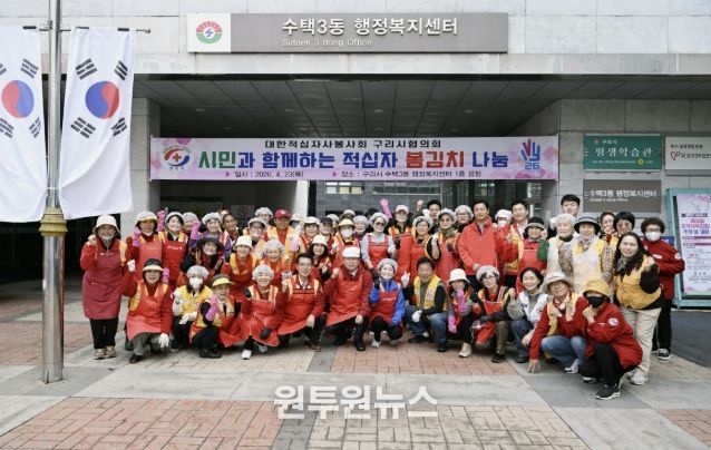 (원투원뉴스) 대한적십자사봉사회 구리시협의회는 지난 23일 수택3동 행정복지센터 1층 광장에서 '2026년 시민과 함께하는 적십자 봄김치 나눔’행사를 실시했다고 밝혔다.