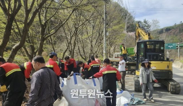 이번 정화 활동에는 상면 직원과 지역 주민 등 50여 명이 자발적으로 참여해 의미를 더했다. 참여자들은 상면 봉수리와 항사리 하천 변, 국도 37호선 교각 밑에 쌓인 혼합 쓰레기를 가연성, 매립용, 재활용 등으로 분류해 수거했다.