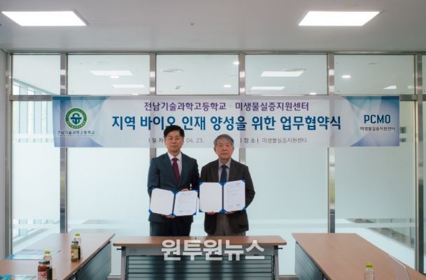(원투원뉴스) 전남 화순 미생물실증지원센터는 지난 4월 23일 전남기술과학고등학교(교장 홍성희)와 지역 바이오산업 인재 양성을 위한 업무협약(MOU)을 체결했다고 밝혔다.